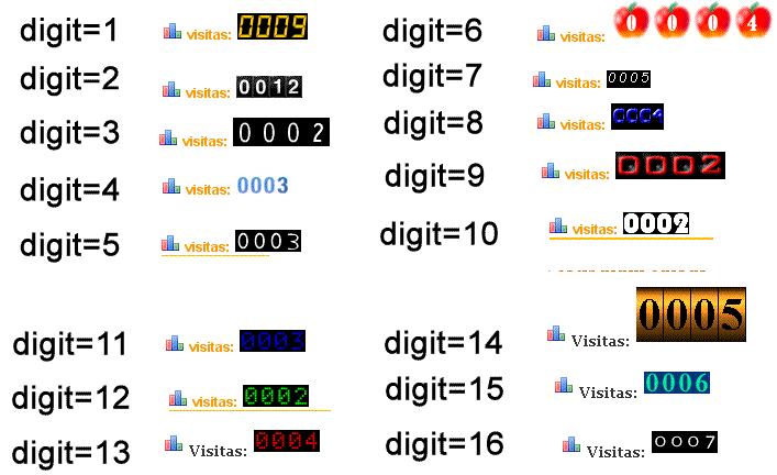 6) Para alterar a imagem da numeração do contador, procure no código o trecho digit=16 e altere o número 16 para o número da imagem que você preferir.